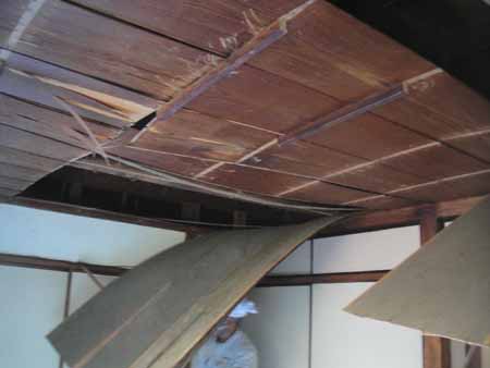 天井裏にねずみが発生。また老朽化により和室天井・玄関廊下天井・壁の貼り替え工事を行います。
