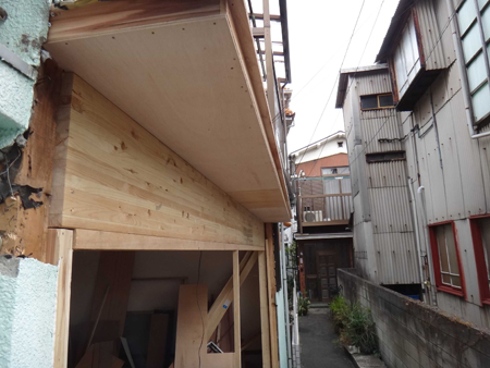 大田区のシャッター交換、リフォーム工事現場:No.7 霧除け(屋根)制作