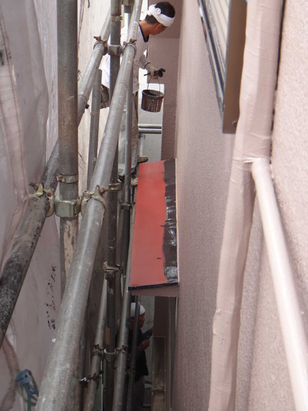 クラックが目立ったバルコニー下も、このように修理して、目立た無くなりました。