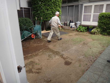 前面道路がかなり勾配の為、入口の段差を少しでも緩和することも目的です。