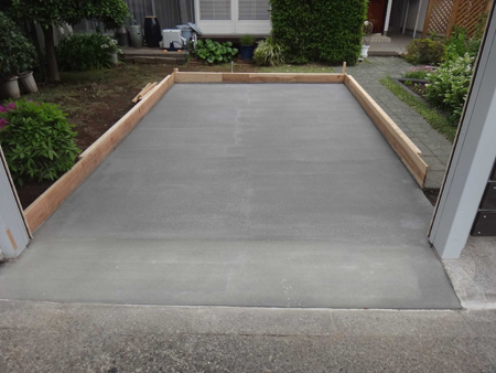 この後、滑り止めの刷毛引きをして、明日、型枠をはずし、養生して、引渡しとなります