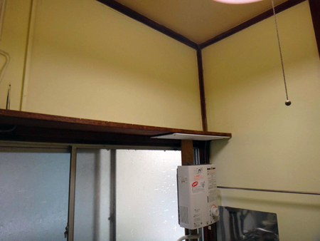 キッチン上の棚板撤去・吊り戸取付前の画像です。