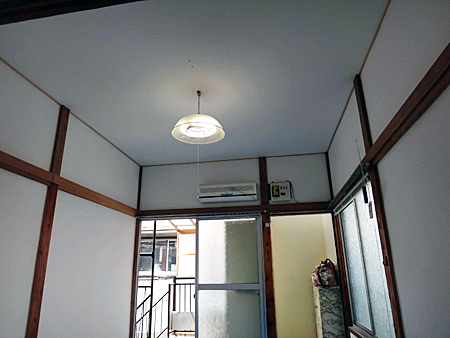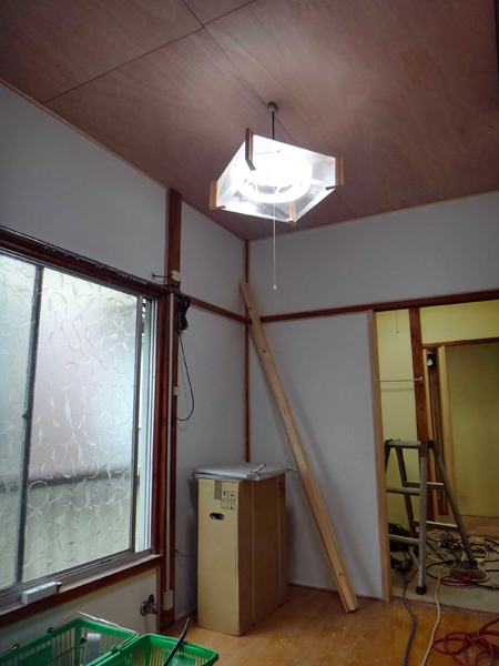 3畳間、キッチンのCFの施工前です(材料仮置き)。