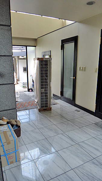 まず、空調の大型室外機を室内から裏庭に移動させました。