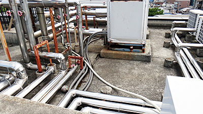 同時に電気工事(エアコン専用)を屋上より引きます。