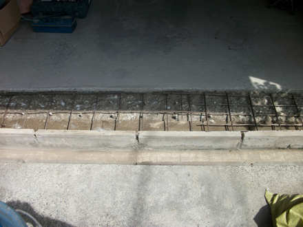 側溝手前をハツリをして削りました。よく密着させるため下地作りです。