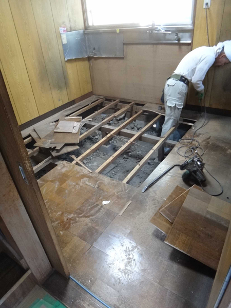 水平も狂ってた為、根太も一部取り換え、大引きも高さ調整しました。