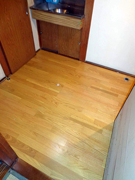 廊下は傷んでいませんので、既存フロアーの上にそのまま貼ります。。