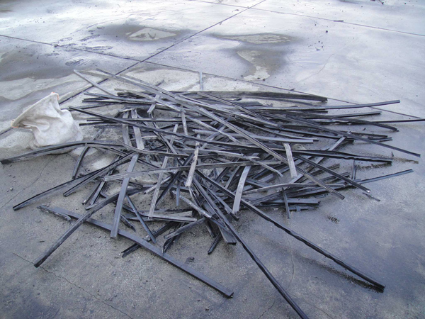 土間目地撤去です。右の写真は撤去した目地棒です。 | ![]() | ![]() |