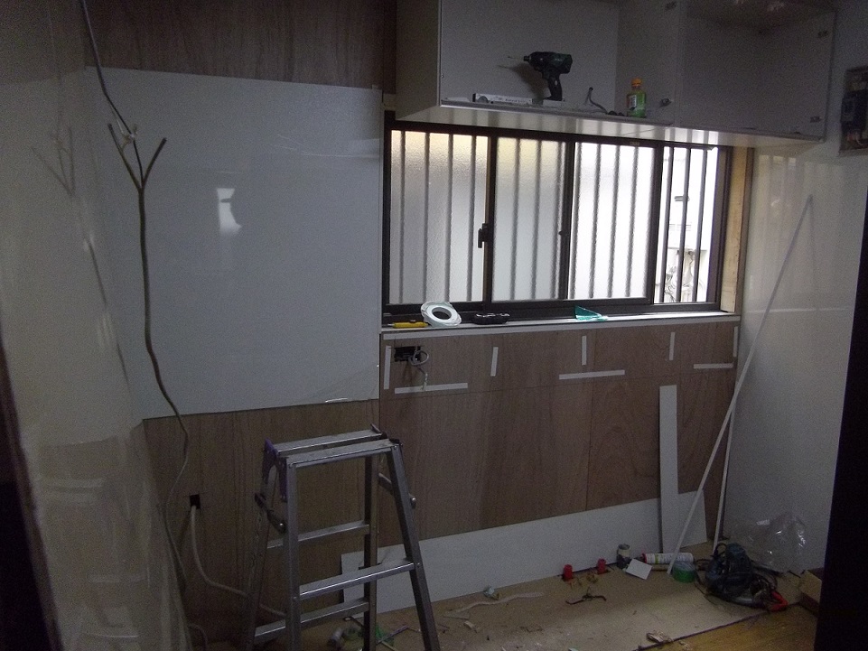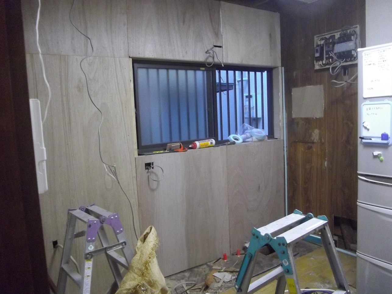 分電盤を 一度外し その面に キッチンパネルを 施工しました。