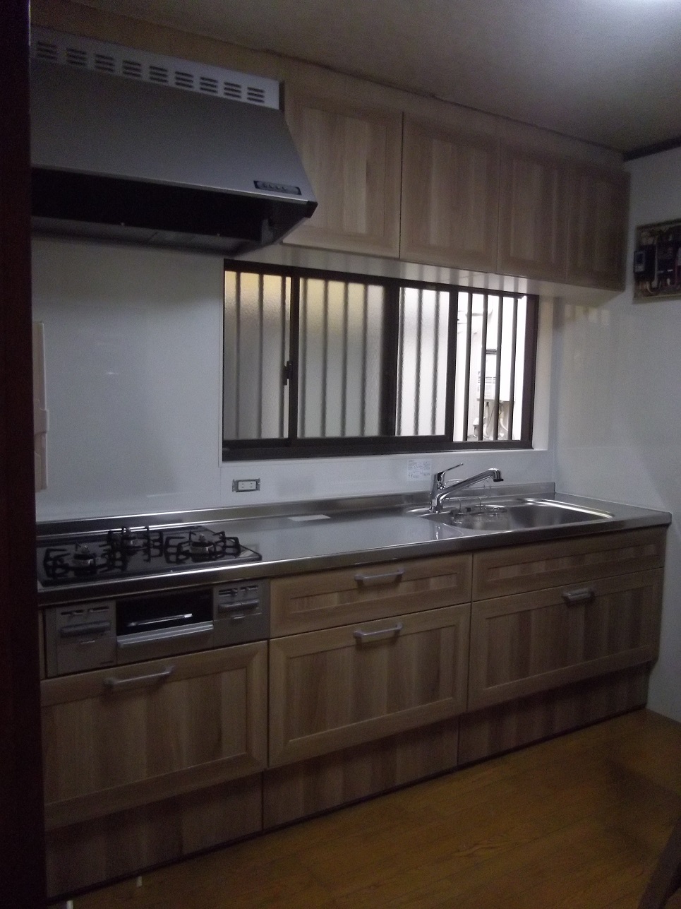 なを 本日 キッチン耐震工事の為 キッチンの裏と側面の 筋違工事為もありますが この際 SK に 交換するため 既存キッチンを解体撤去しました。