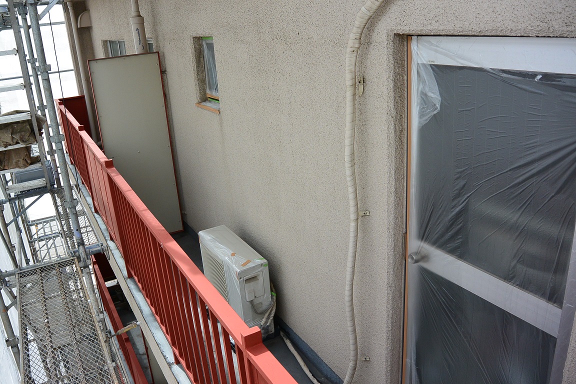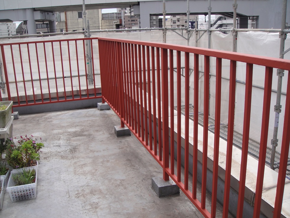 一か所にまとめて 作業する準備 手すり塗装、床防水工事をします。