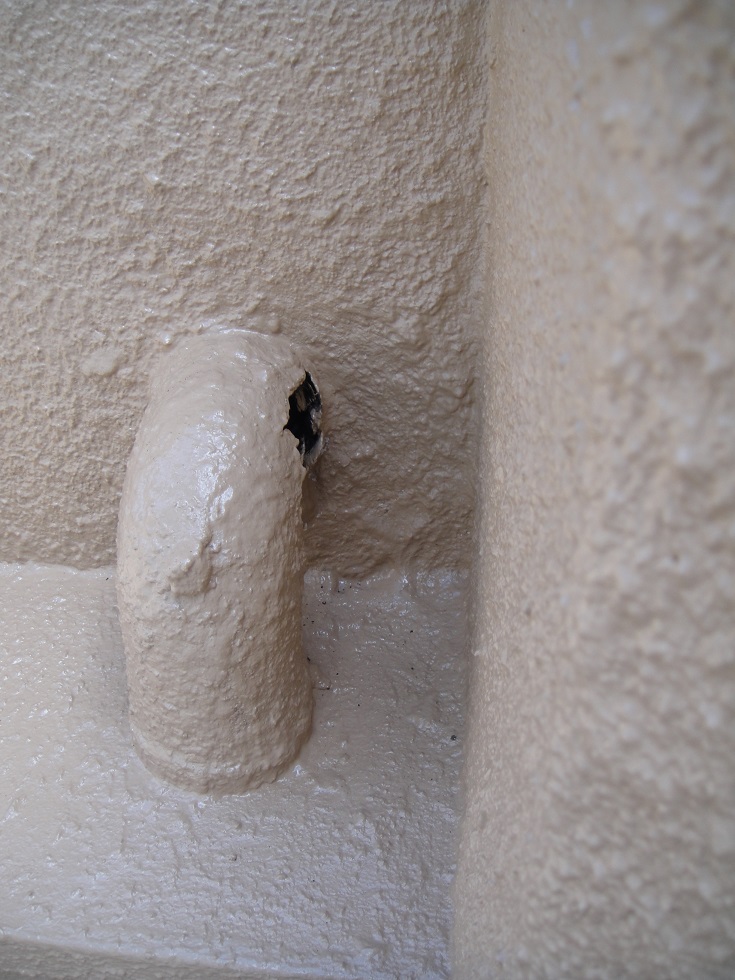 屋上排水管 ドレインに 鎖による穴も見つかったため