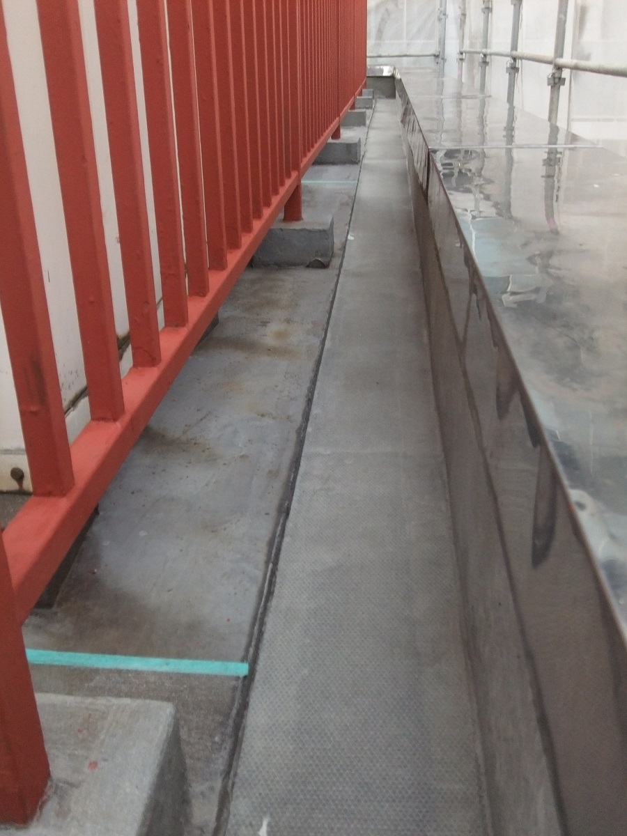 屋上手すり取付部分床 立ち上がり部分 防水下地処理中