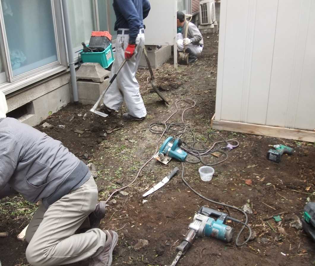 砕石敷き 前の 土間ならし 枠入れ