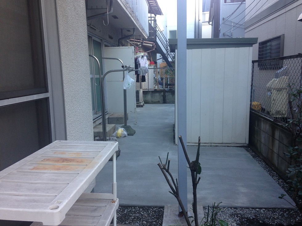 完了間際です。 その後 養生期間をおいて 枠の撤去と 物干し台座 とか を 元に戻します。