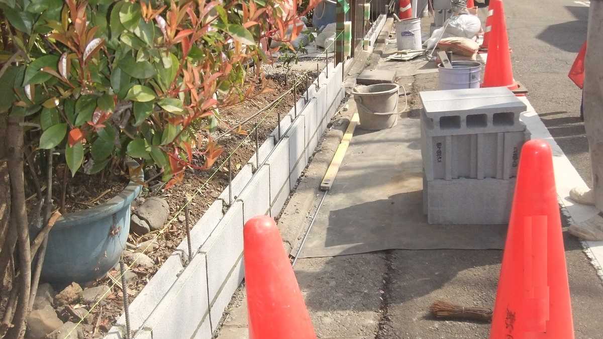 施工中 です。(ブロックは2段 アルミフェンス H=800 施工予定)