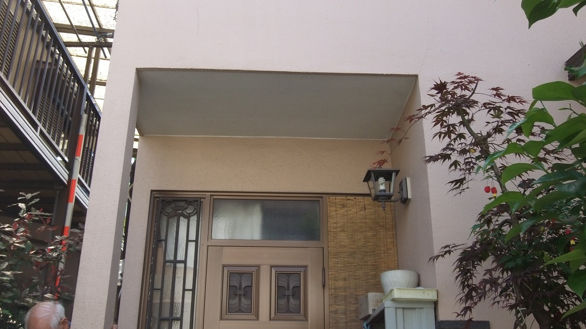 又 外部 玄関上に 庇を付ける工事 を 行います( 西日で 取っ手が もてない位 暑くなってしまうためです。)