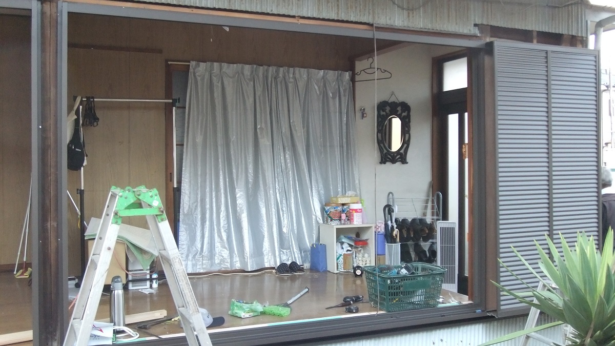 中の 木枠類を 取り付け そして 外部 サッシュ上場の 板金処理(雨押さえ) を 取り付けて 引き渡しとなる予定です。