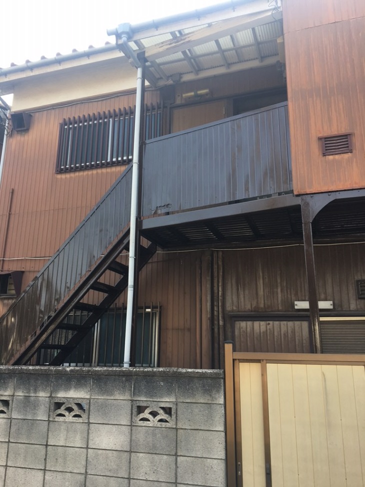 鉄骨 外階段部分 と 鉄骨柱の状態が かなり 劣化してます、