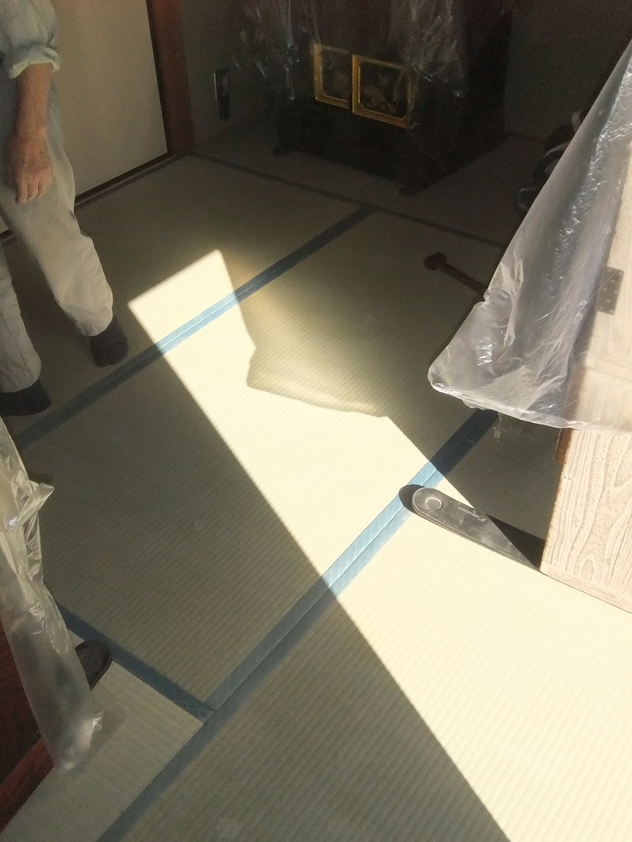 新規畳敷き込み中 このあと 家具等を 元に戻して終了 引き渡しとなります。