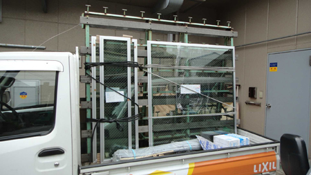 ガラス取り換え作業中です。