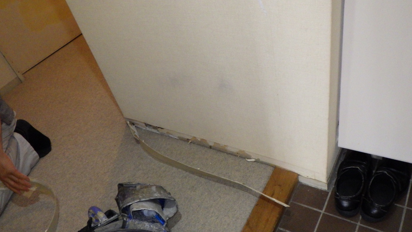 本日22日より 着工です。 まずは ソフト巾木を 撤去していきます。