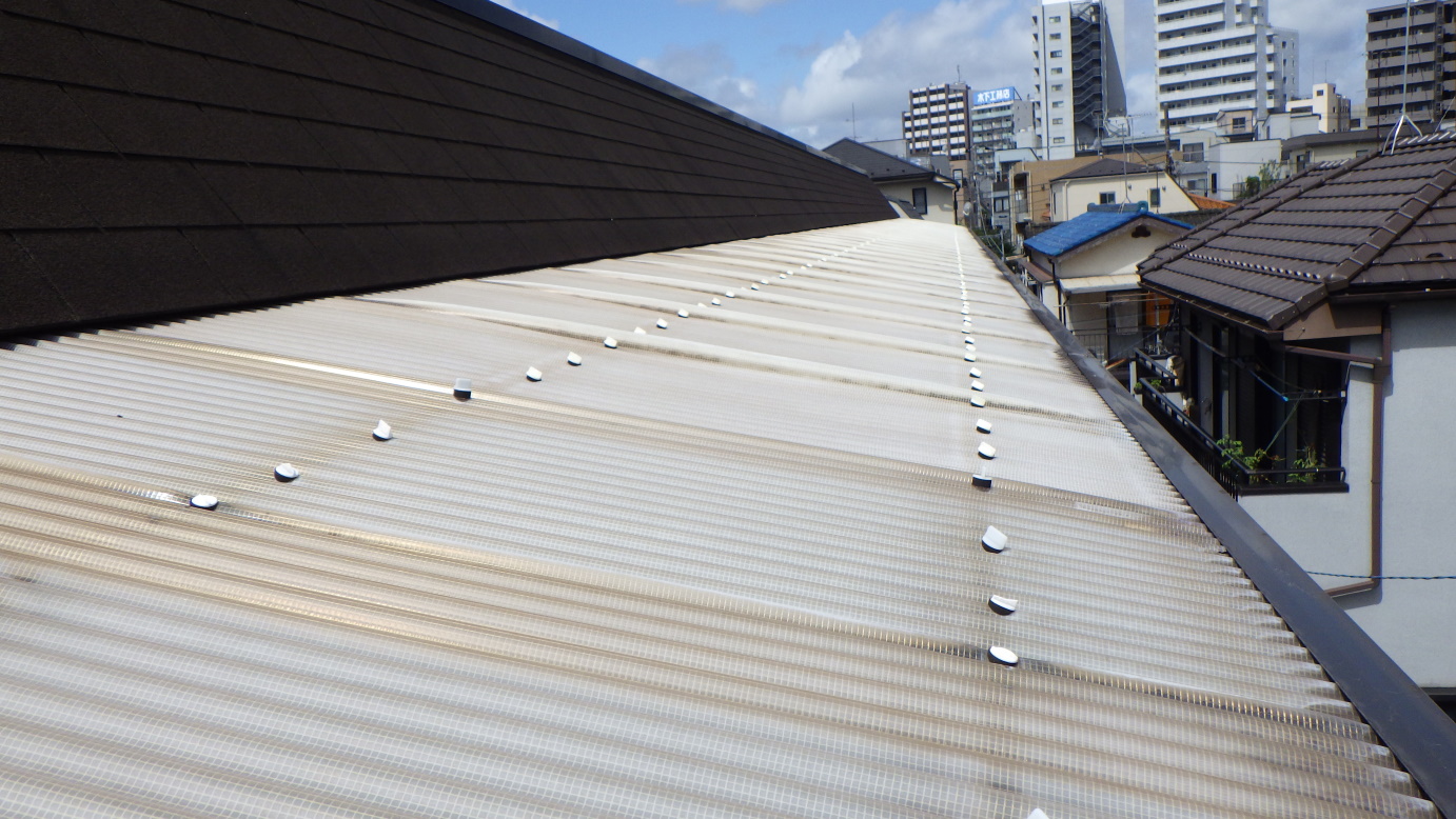 経年劣化で 風がふいたら かなり 危ない状況かと 思います。 場合によっては 飛ばされます、、