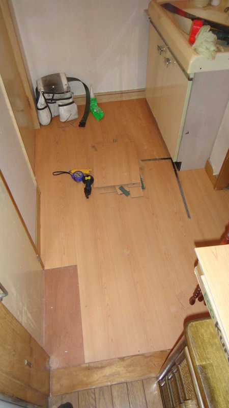 又 洗面脱衣場も傷んでいたので、置き式床を貼りました。