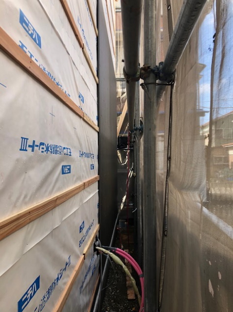 外部 壁下地(通気同縁)打ち 施工中