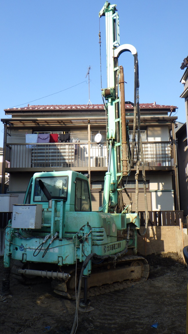 いよいよ 工事 スタートです。 まずは 地盤改良工事から 取り掛かります。