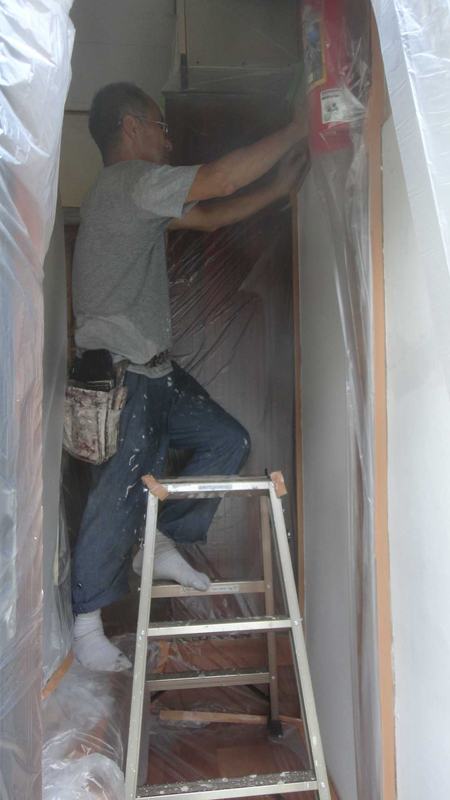 先日天井張り替えた現場の残り工事(塗装工事)です。