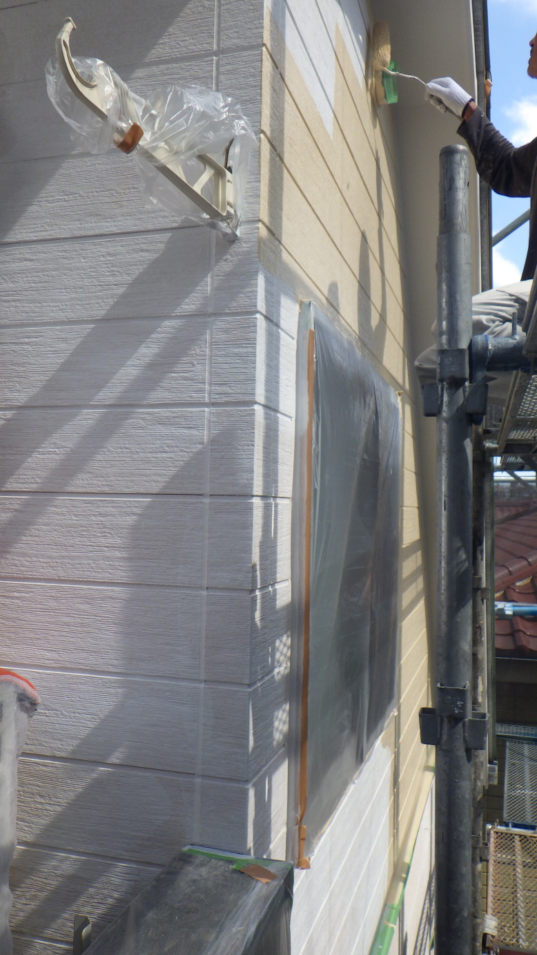 やっと 天気が よくなり いよいよ 仕上げ塗装に 3Fより 取り掛かります。