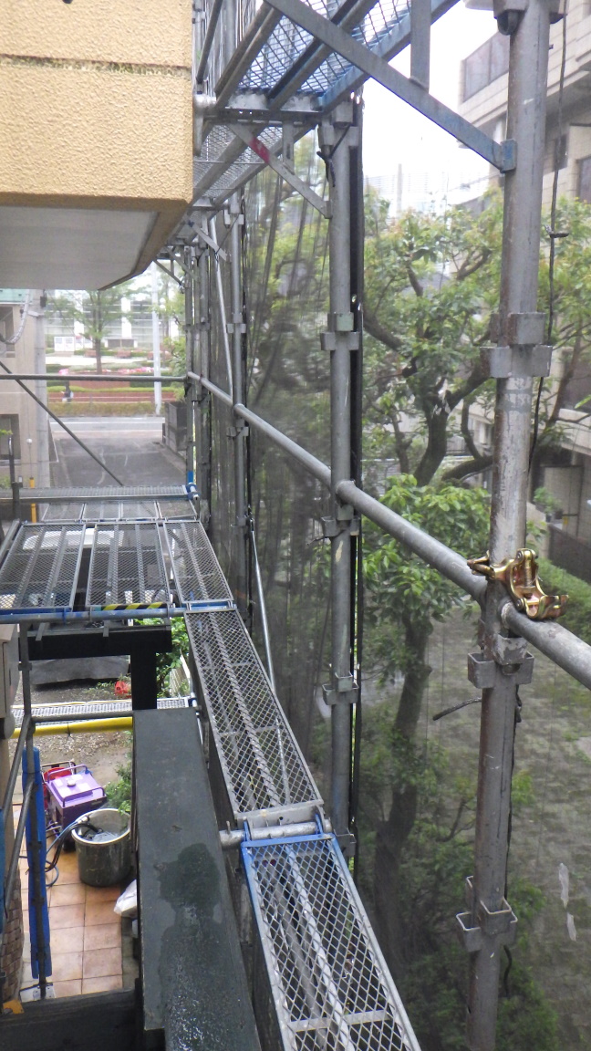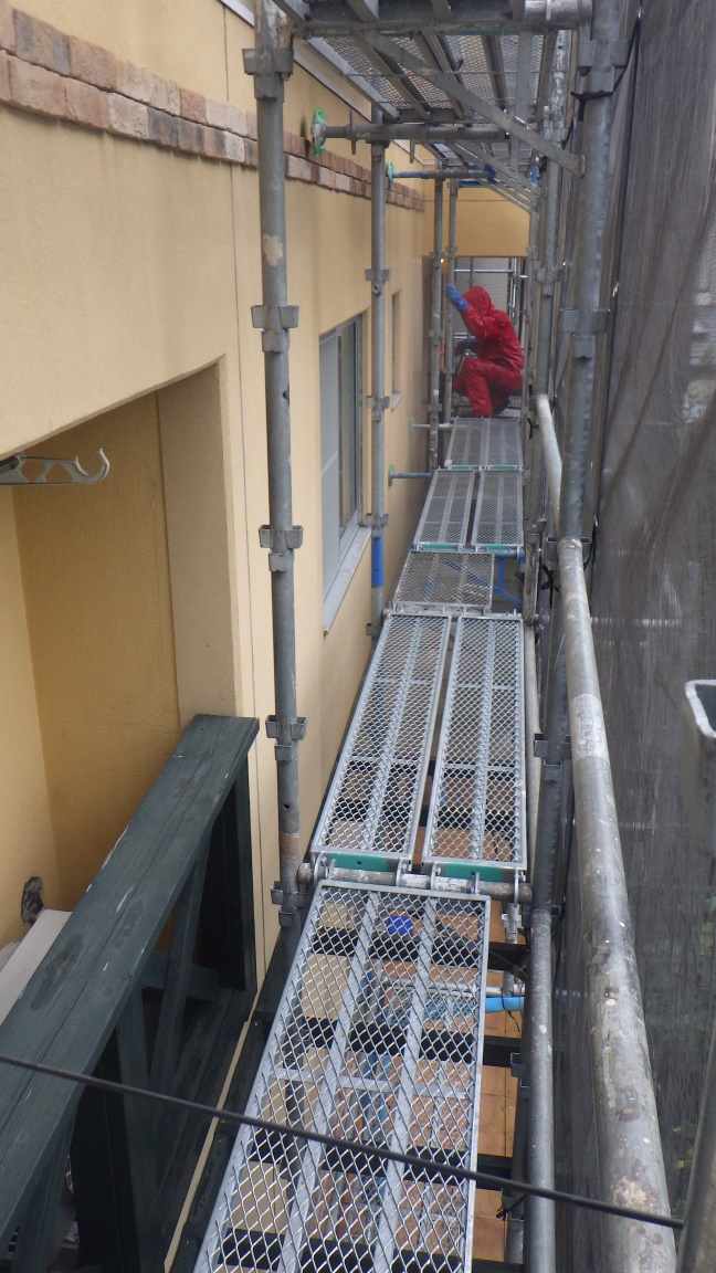 同時に 塗装準備の 養生工事 に 取り掛かっております。