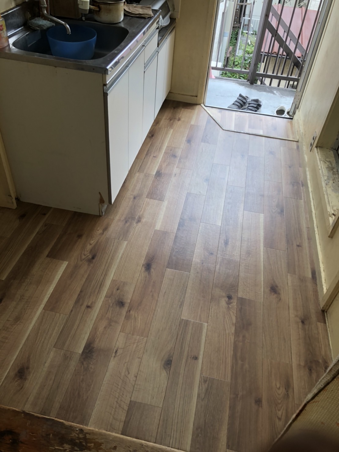 悪い 床下地部分を 撤去して コンパネを貼り パテ打ちしました。 乾燥後 貼ります。