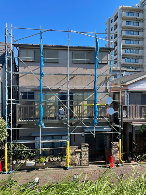 引き続き 足場を架けて 外装塗装工事を 8/4〜 取り掛かります。