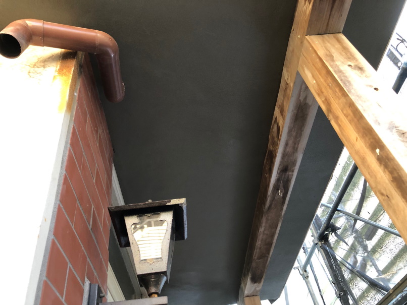 劣化腐っていた 玄関軒天を ラスを貼り 左官仕上げしました。