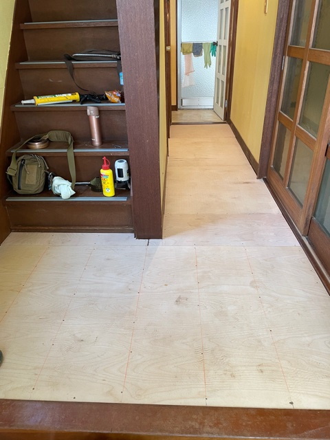 まず手始めは 内装床 下がってしまっていますので 全て解体して 新しい 床を 貼ります。