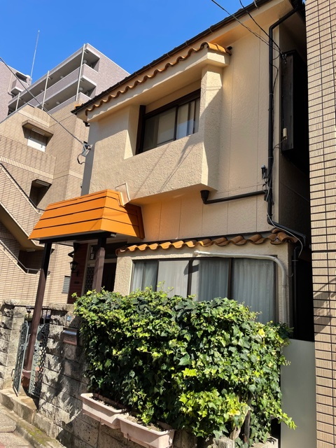 足場を架け 外装関係工事 予定 (劣化した部分改修、玄関庇撤去 板金仕上げ、雨トヨ交換、等々)