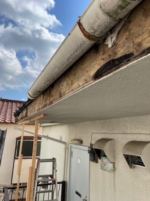 下地完了 この後 板金で 破風を 巻き、、雨トヨ 交換していく予定です。