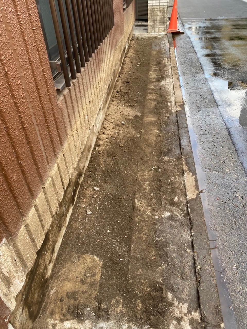 追加工事で 花壇に 埋まっていた 壁面の 無塗装部分を 塗装することとなりました。