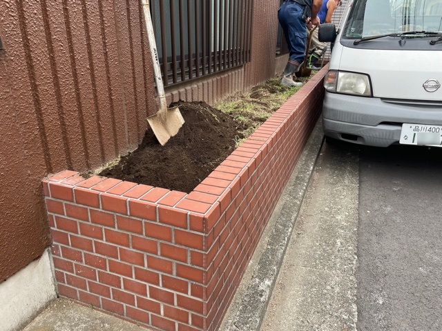 まずは 花壇の 土を 撤去処分していきます。