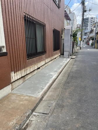 既存の 花壇を 撤去処分して 土間コンを 打ち その後 サイクルポート 設置に するための工事です。