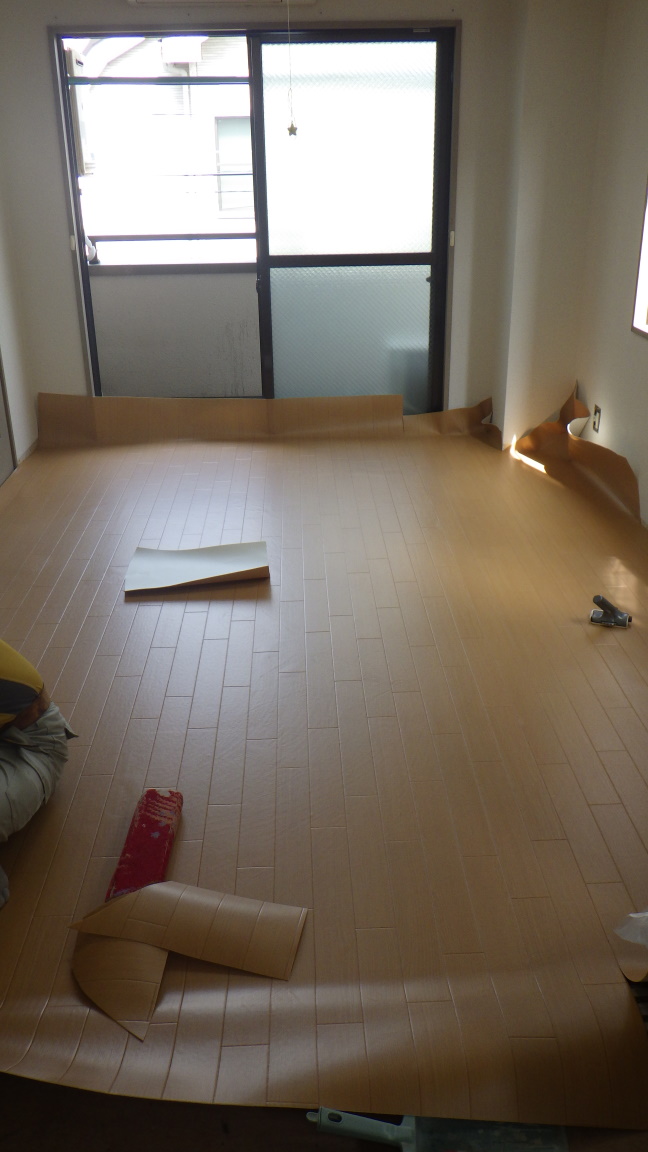 まず 今回 床は 全てCFを貼り 和室は 畳表替え クロス張替え工事、建具修理、一部巾木交換 それと クリーニング 工事となります。