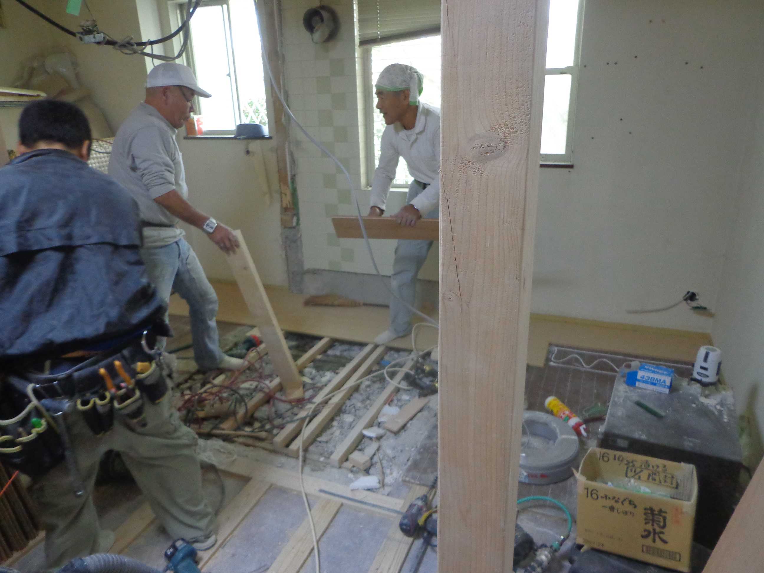 床貼り中です。