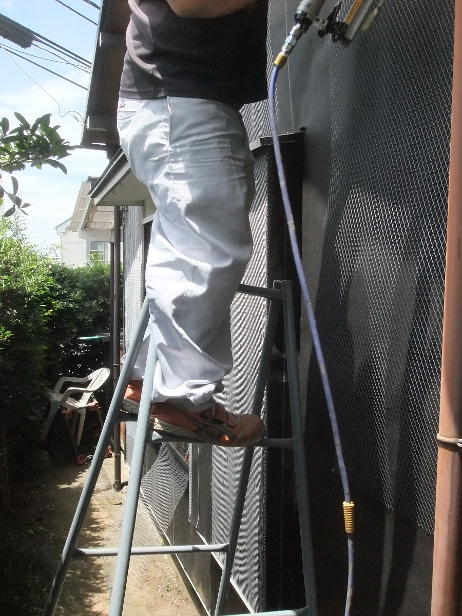 本日 左官 内部京壁工事 外部 仕上げ(上)塗り 工事を経て 養生 週明け 塗装工事 行う予定です。