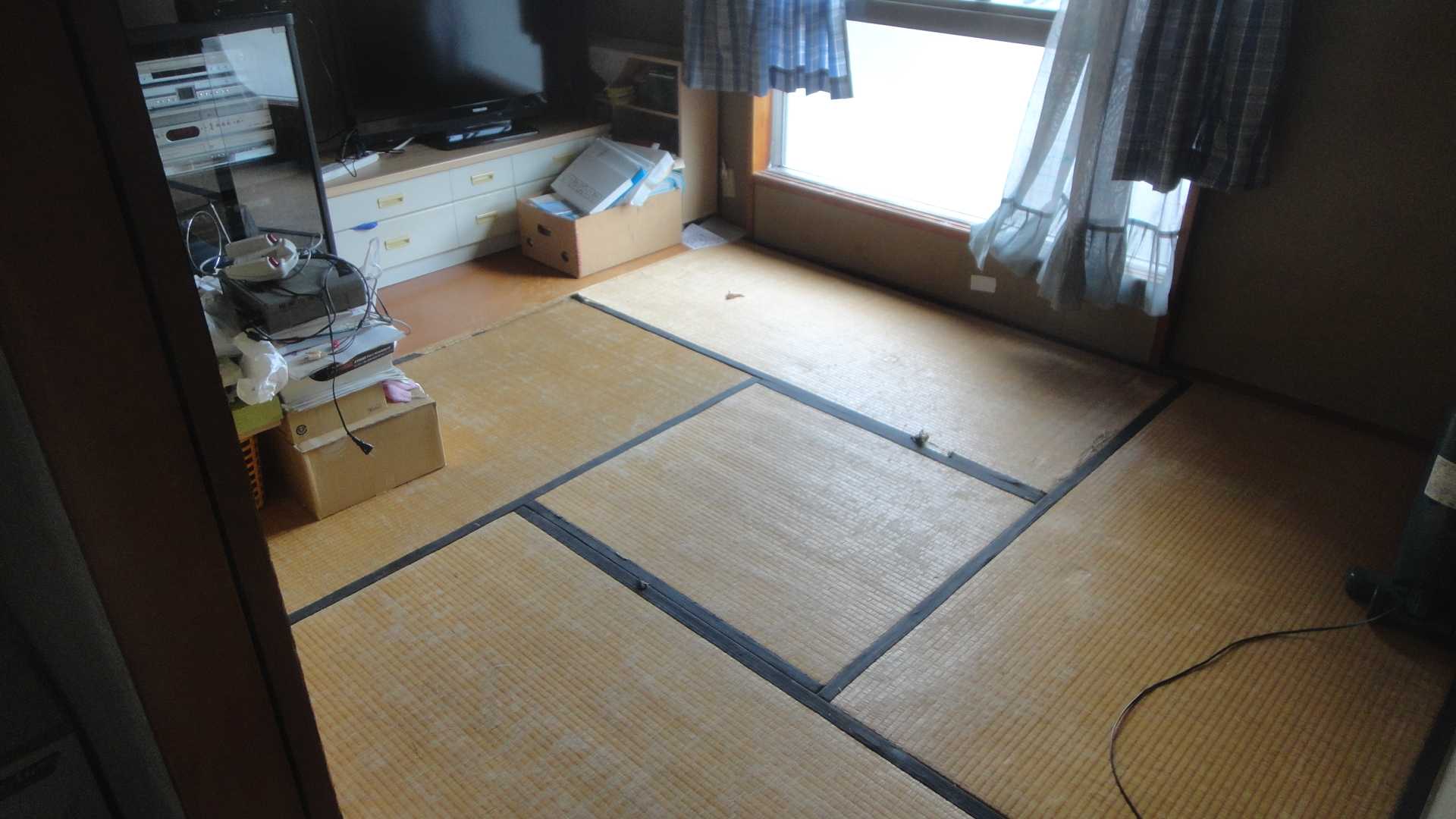 和室2室と洋室(カーペット)を置き式フローリング(大理石調)に変えるリフォームです。