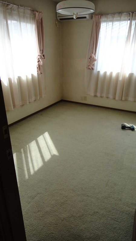 カーペットを撤去して、コンパネ打ちしました。(カーペットの下のクッション材は、あえて残し、フローリングの足触りが、ソフトに感じられます。)