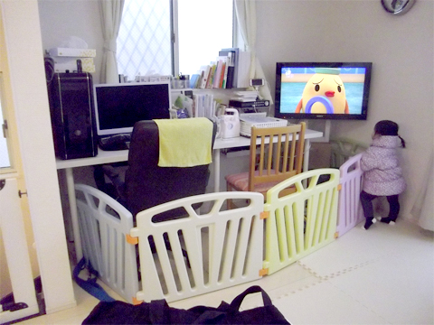 既存のお部屋の様子です。棚はなく、机と出窓を利用しています。