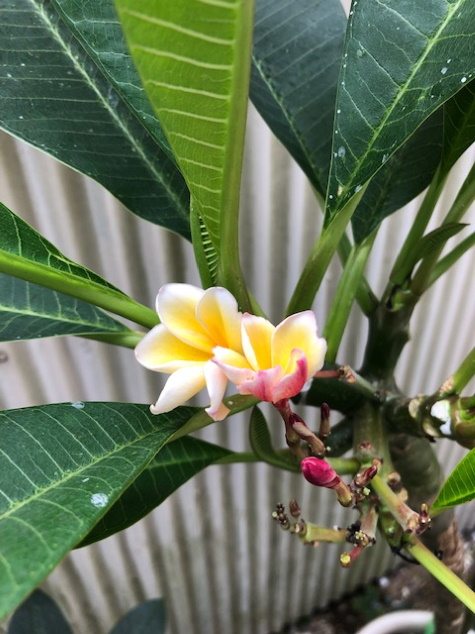 ななんと、、 開花しました、、 プルメリア、、、、です。